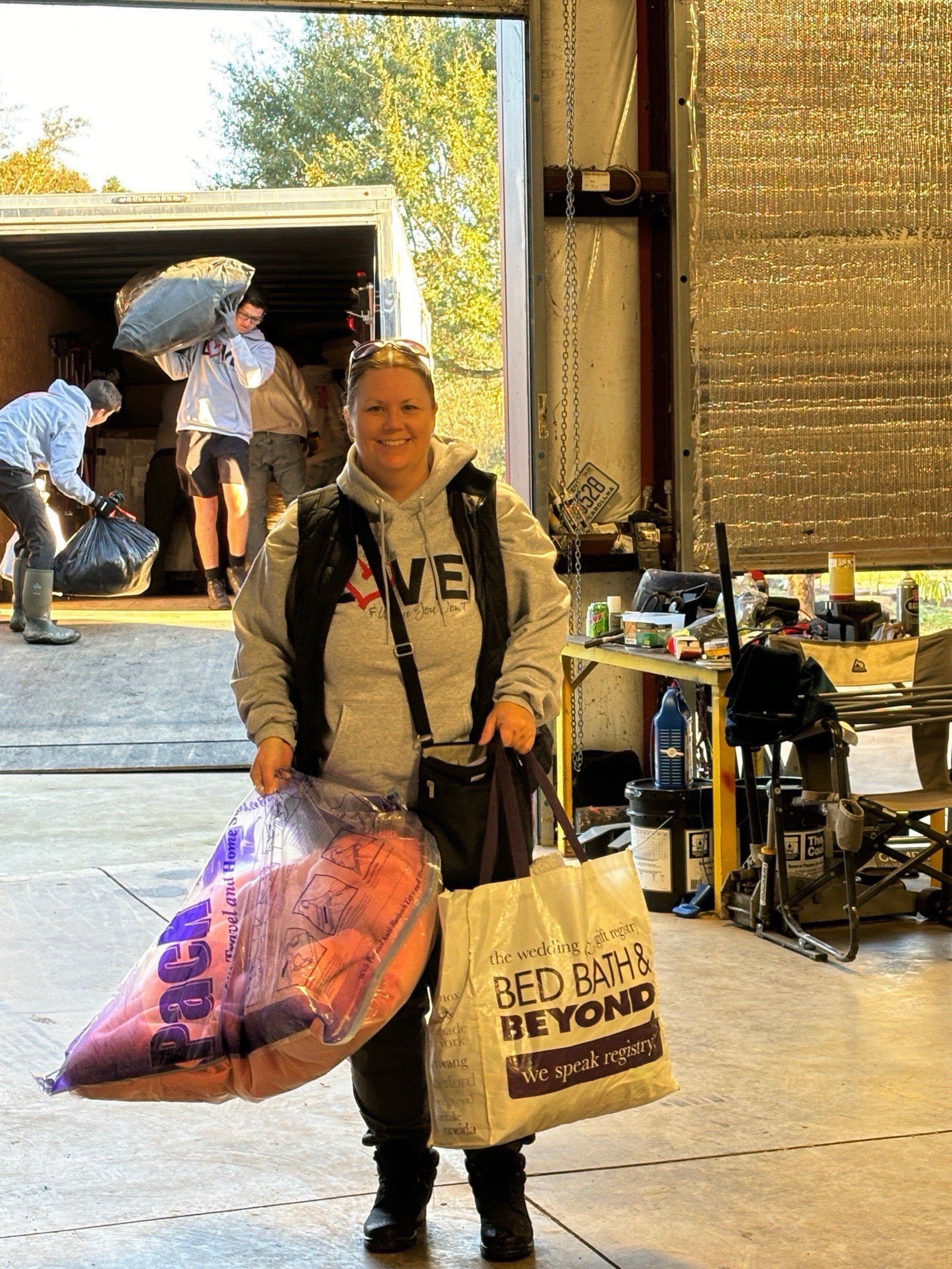 We’re stopping to drop off the bottled water and then headed up the mountain to meet some families and deliver generators, camping supplies, and blankets/quilts.