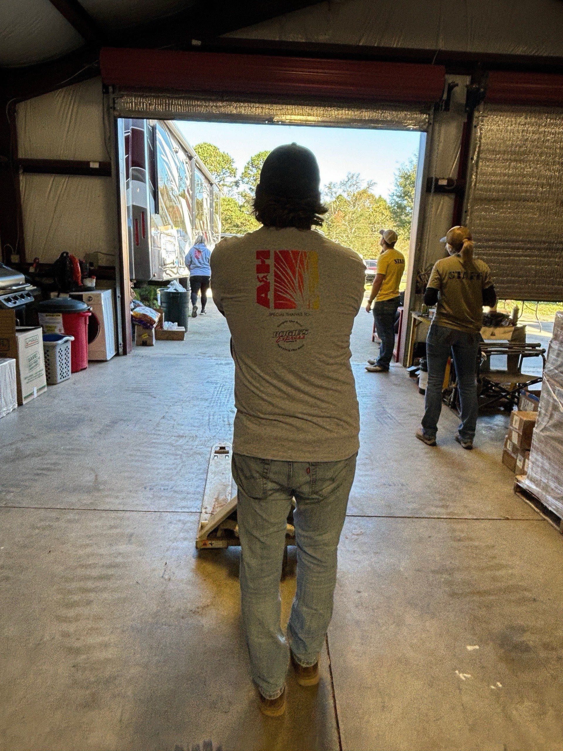 We’ve unloaded all of our supplies, except a couple pallets of bottled water and some generators, chainsaws, shovels, rakes, etc., that we’ll need throughout our day.