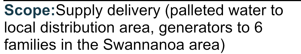 Our itinerary has changed a bit. Mountain Rescue NC has connected with some families who have immediate needs. So, in addition to doing home repair and debris removal, we’ll be delivering generators to six families in a very hard hit area.